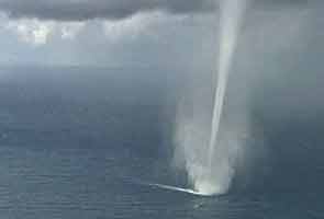 Video, filmed from a helicopter by Australian broadcaster Channel Seven, showed several powerful columns of swirling air blasting along the water's surface near the coastline.